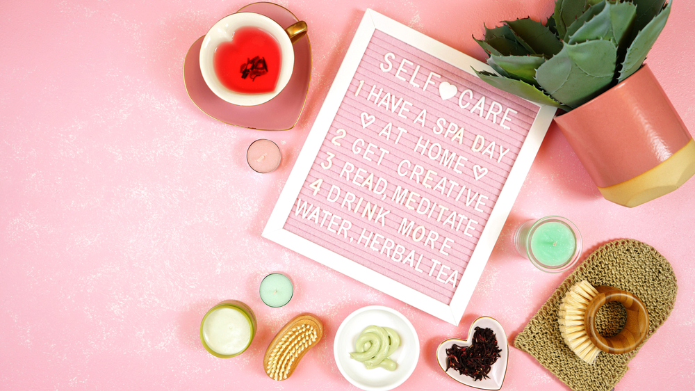 Self-care,Wellbeing,Home,Spa,Letterboard,With,Herbal,Hibiscus,Tea,,Pro